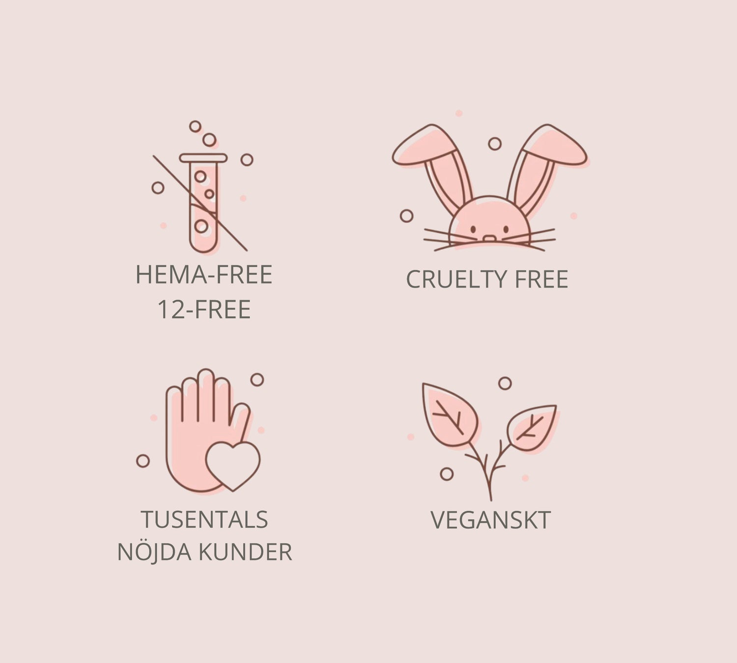 Våra produkter är fria från bland annat HEMA och är formulerade utan förbjudna ämnen i enlighet med europeiska säkerhetskrav.