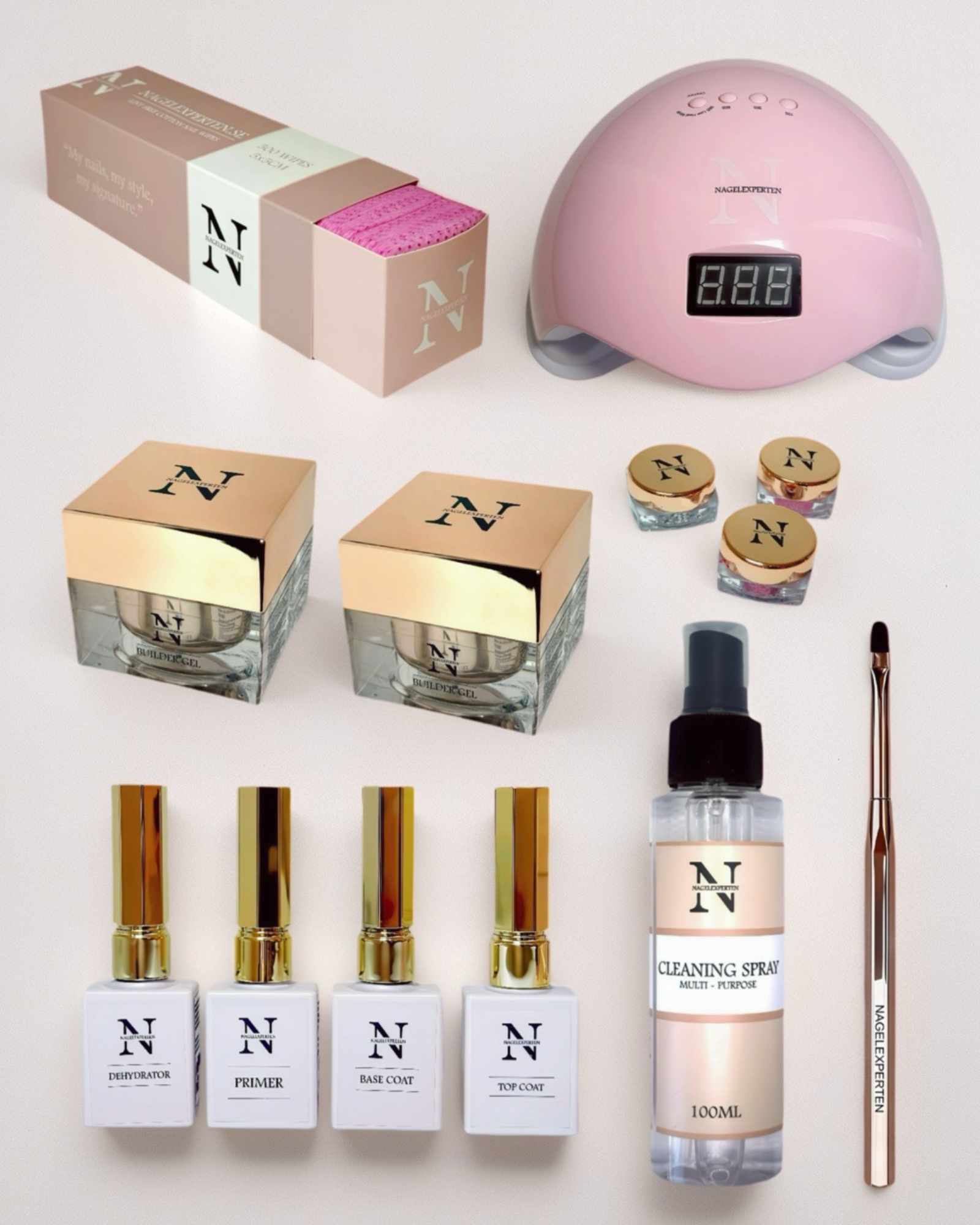 Det perfekta startkitet för dig som vill komma igång med att göra snygga gelénaglar direkt! Nagelkitet innehåller allt du behöver för att komma igång snabbt, inklusive UV-lampa!
