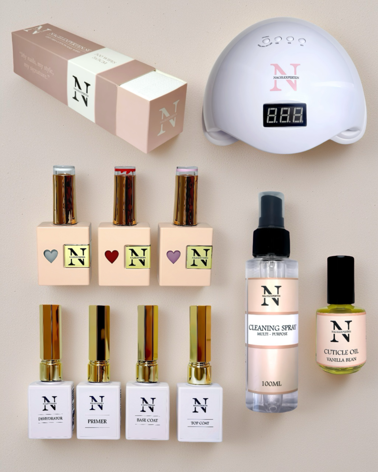 Nagelexpertens gellack startkit passar perfekt för dig som snabbt vill komma igång och skapa snygga och hållbara naglar med våra gellack! Nagelkitet innehåller allt du behöver för att göra salongssnygga naglar direkt, inklusive UV-lampa. Kitet finns att välja mellan vit eller rosa UV-lampa och nail wipes!